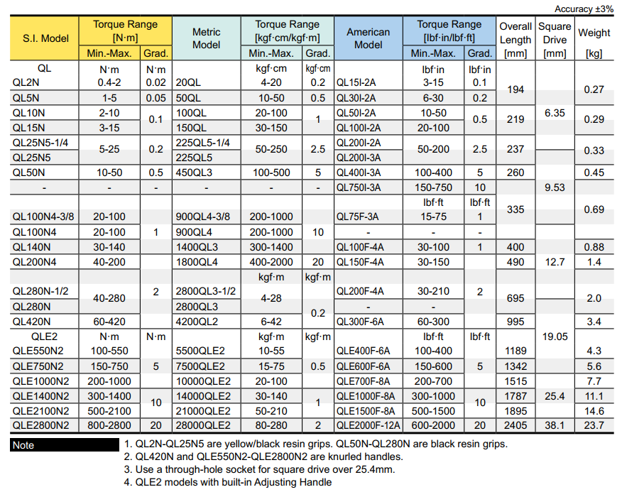 Các Loại Cần Siết Lực Tohnichi Phổ Biến