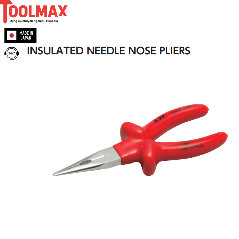 Sản phẩm đạt tiêu chuẩn IEC 60900:2004 đối với dụng cụ cầm tay cách điện dùng khi làm việc gần các bộ phận mang điện đến 1000V AC và 1500V DC. Kìm mỏ nhọn cách điện KTC ZPSL-160 được thiết kế cách điện hình dạng vừa khít, nhẹ nhàng đảm bảo cho công việc bảo trì sửa chữa điện cũng như xe điện đảm bảo an toàn.